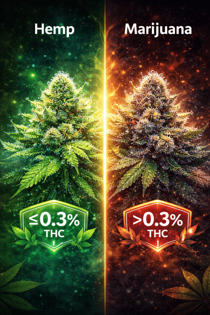 Hemp is legally defined as cannabis with 0.3% or less delta 9 THC by dry weight. Hemp-derived products, including THCA flower, delta 8, delta 9, and THC-P, fall under federal hemp law when they meet this threshold.